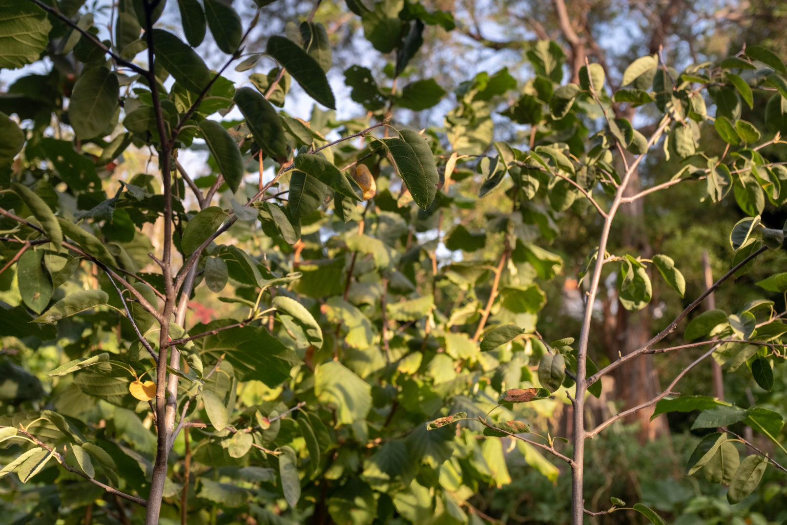 The edible lawn to the north is in shade throughout the winter months so this is where the deciduous trees and shrubs are located.