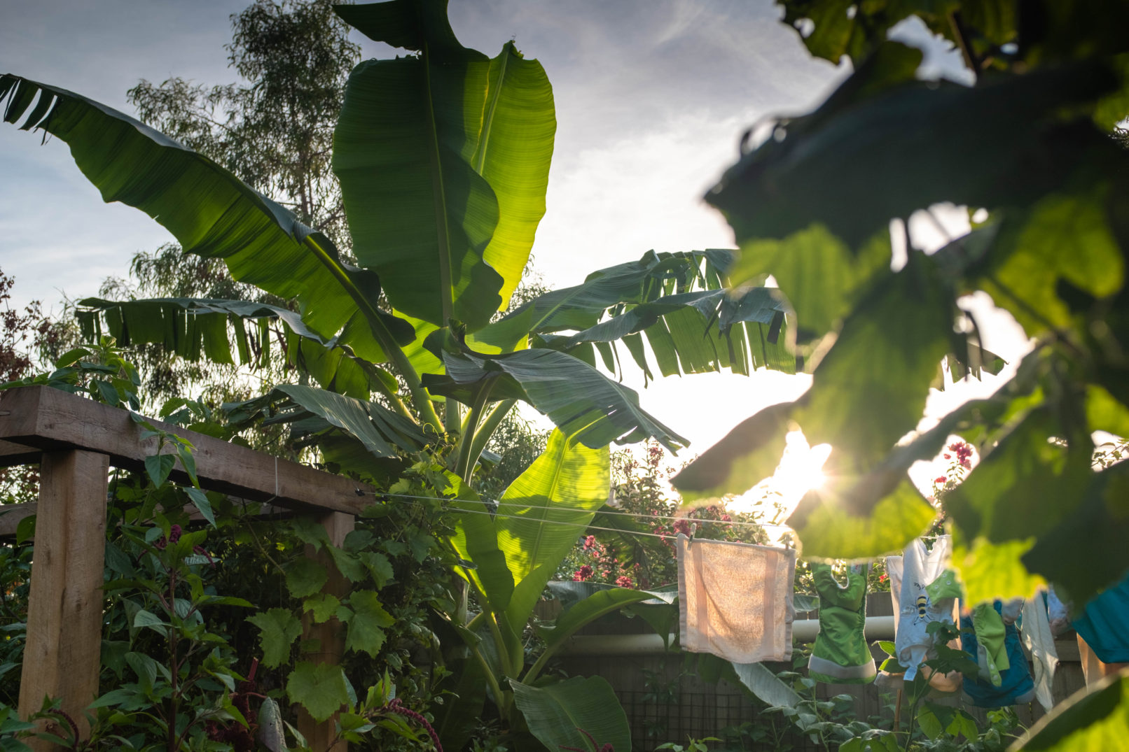 Cool bananas thrive on the western boundary providing summer shade, privacy and a place to empty dirty sink water.